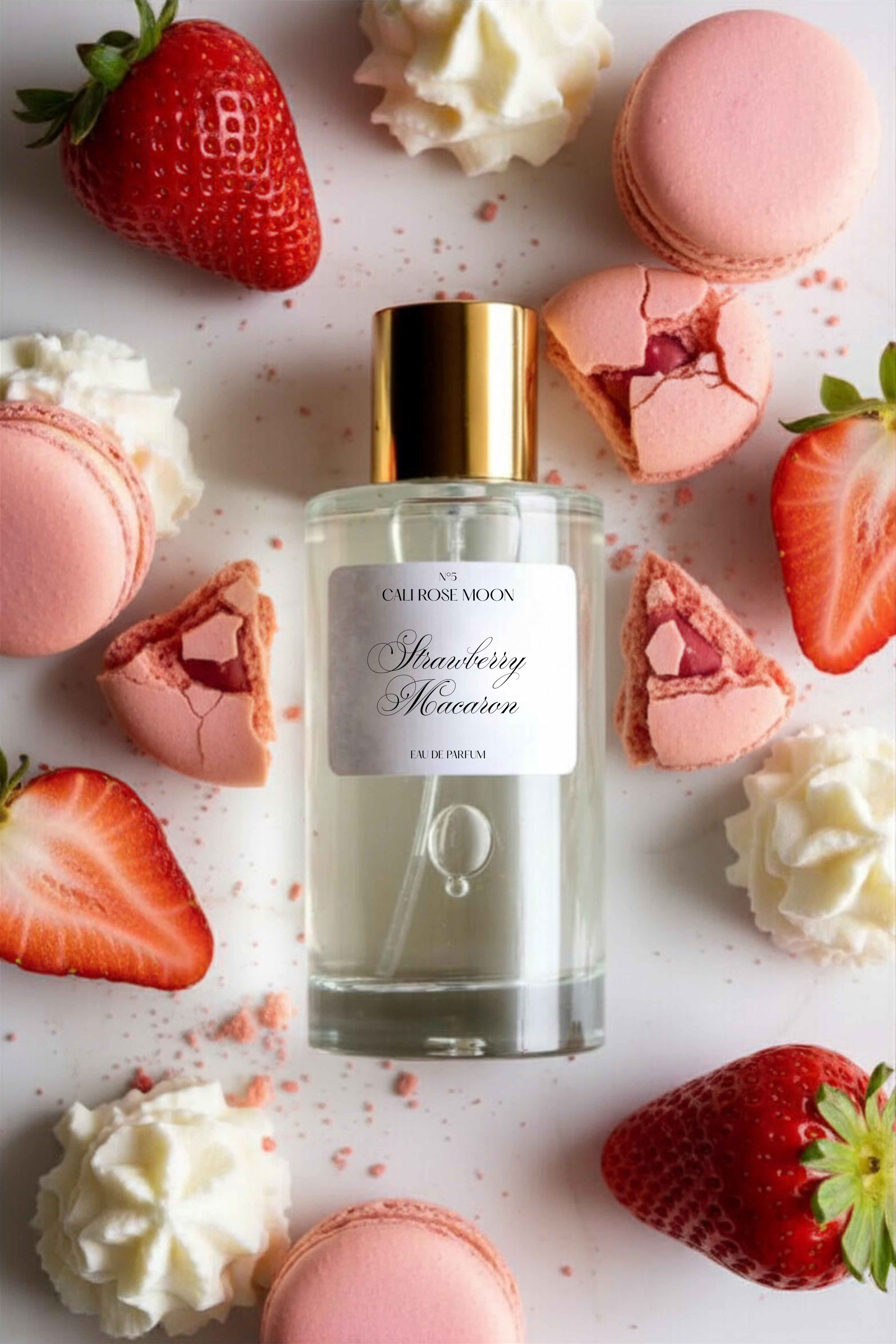 Vibrant, playful and mouthwatering. Smells like a full fresh box of strawberry and vanilla macarons. Feels like innocence and pure delight.